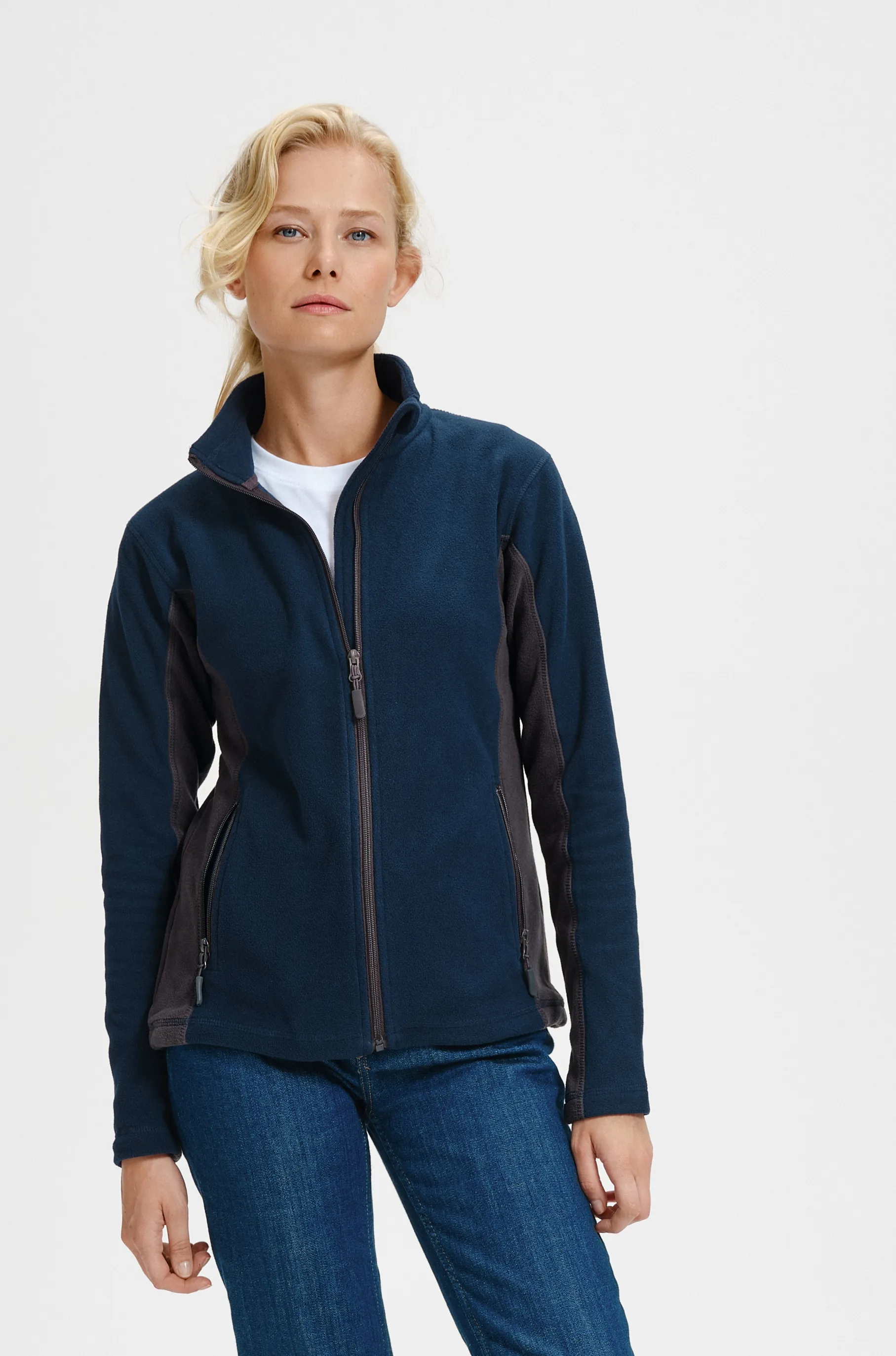 Het contrasterende fleecejack voor dames is verkrijgbaar in verschillende interessante kleuren en maten. U vindt er zeker een die bij u past.