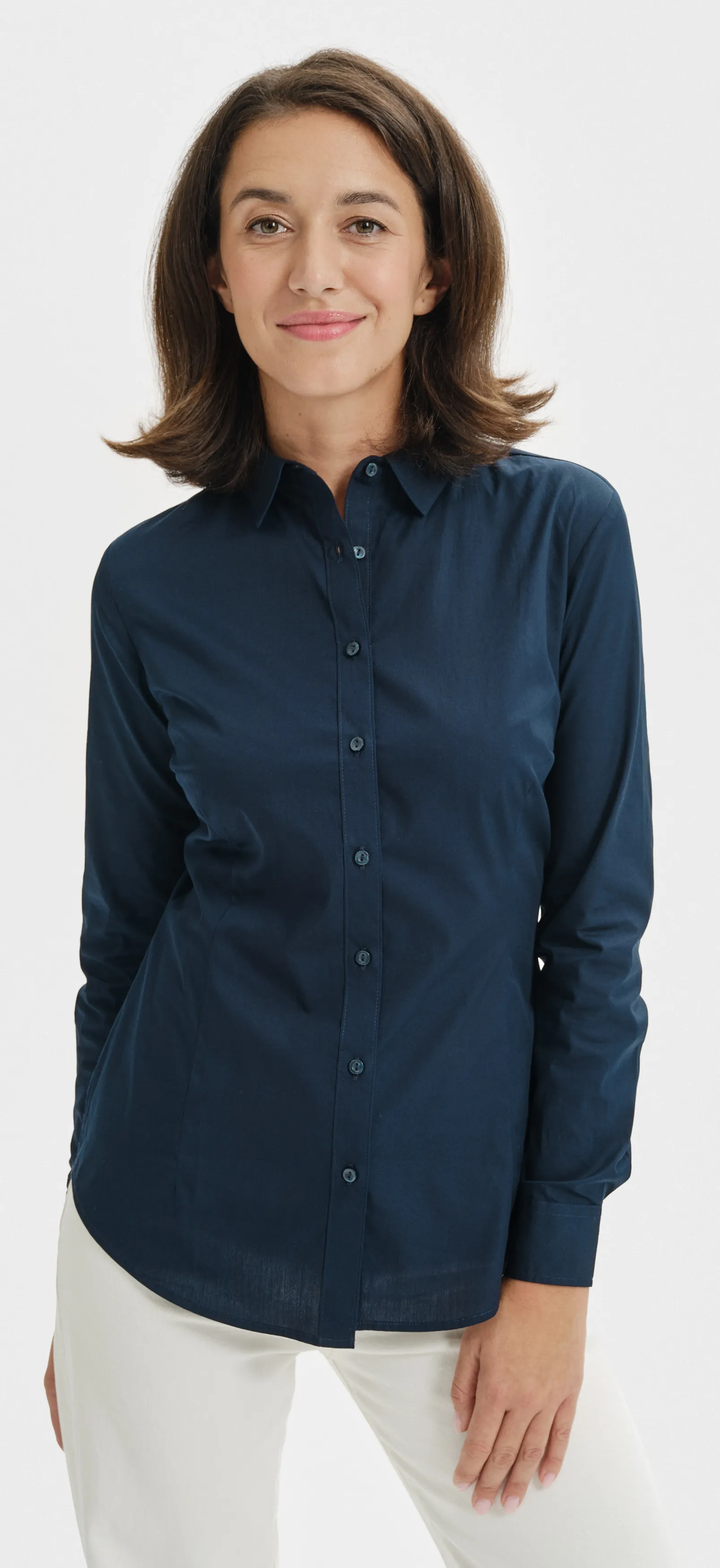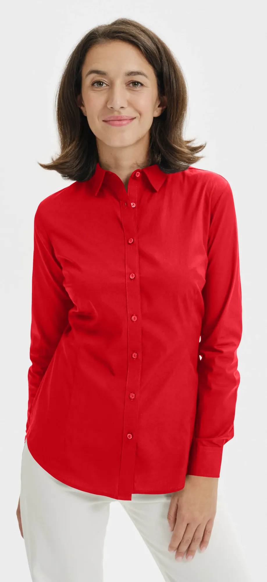 Dames versmald katoenen overhemd met lange mouwen. Meer