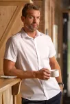 Slim fit herenoverhemd met korte mouwen en een gevormde onderzoom. Meer