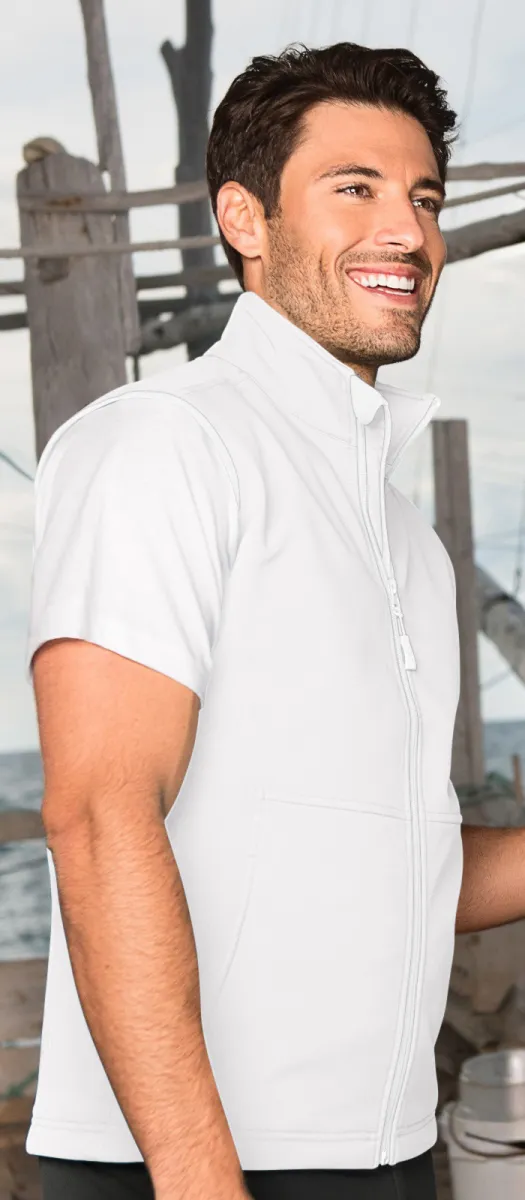Softshell-vest voor heren met zakken en een doorlopende ritssluiting.