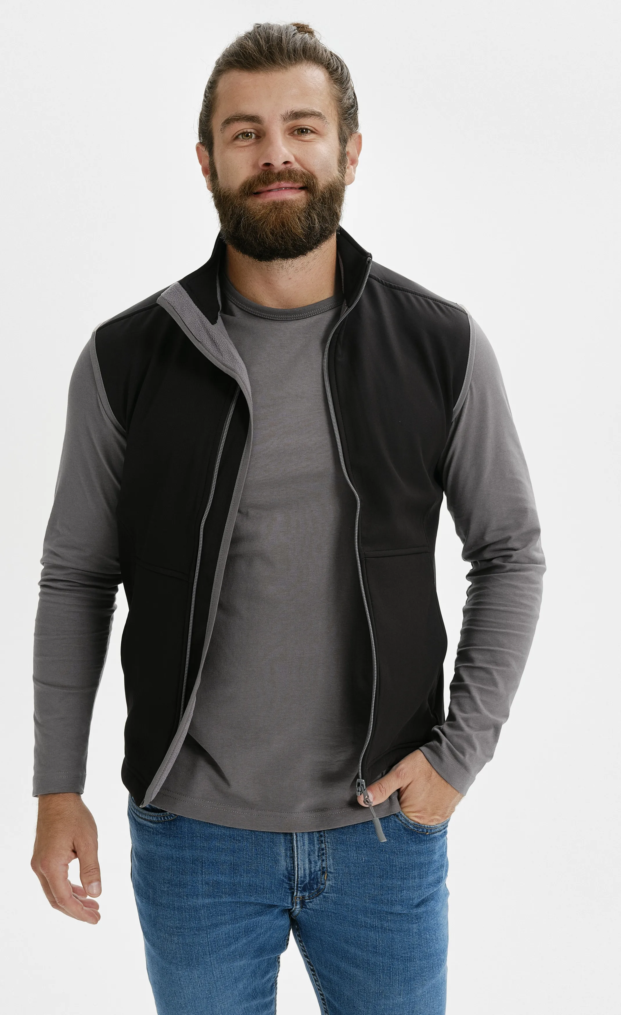 Softshell-vest voor heren met zakken en een doorlopende ritssluiting. Meer