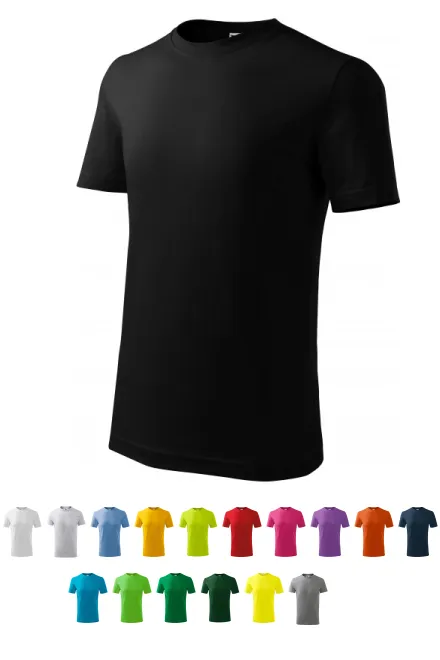 100% katoen • 160 g/m2 (GSM) • 6 kleuren • maten 110 cm / 4jaar tot 158 cm / 12 jaar