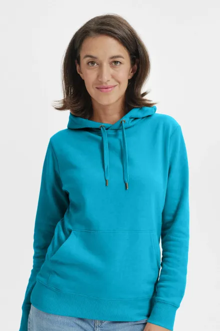 De capuchon biedt bescherming tegen de kou, praktische zakken zorgen voor functionaliteit en comfort. De snit van de hoodie accentueert de vrouwelijke silhouet, maar blijft tegelijkertijd casual en ruimvallend. Dit veelzijdige kledingstuk is perfect voor vrije tijd, werk of ontspanning thuis – kortom overal waar u zich prettig wilt voelen.